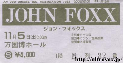 ・1983年 John Foxx来日公演チケット(万国博ホール)